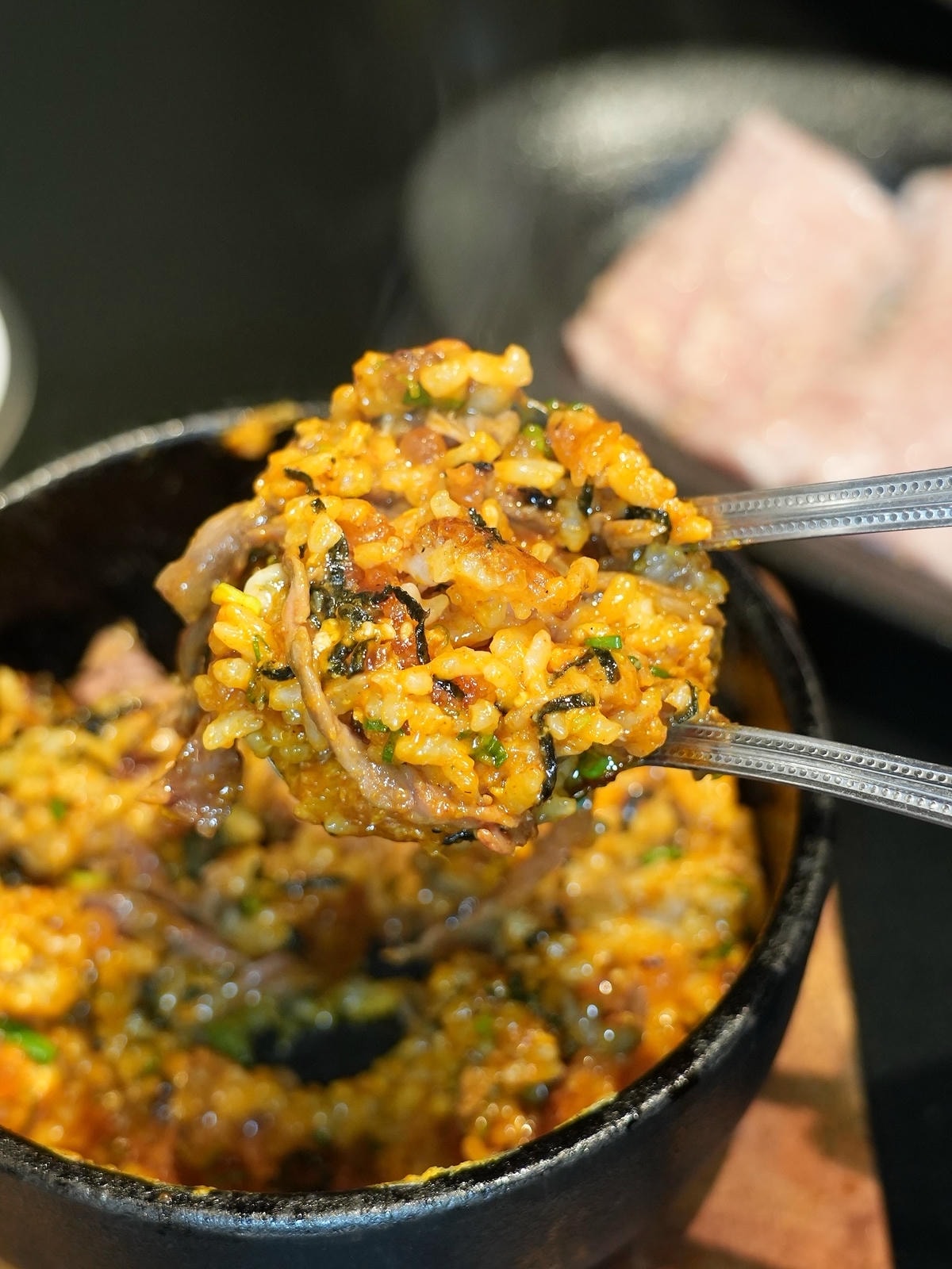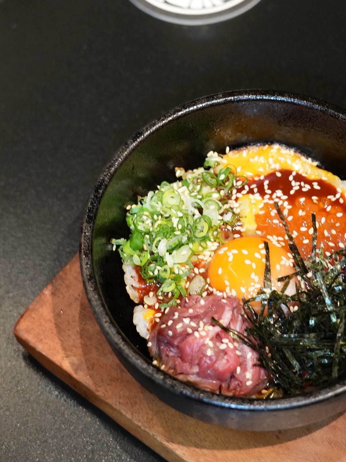 道町燒肉 的石鍋拌飯海膽與熱石鍋攪拌的瞬間香氣逼人,層層堆疊,每一口都像咬進大海,海膽濃郁綿密,配上蛋黃拌飯香氣層層炸裂,濃郁又鮮美。