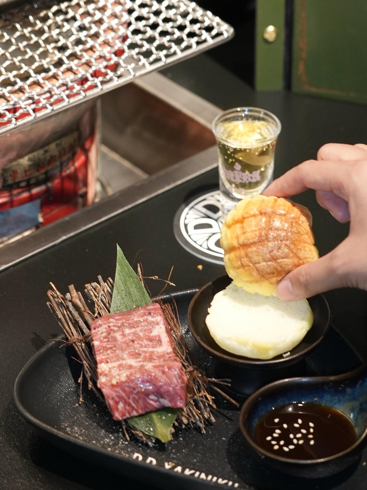 超驚艷!道町燒肉的迷你的菠蘿包超可愛,菠蘿包烤過外酥內軟,搭配多汁和牛,鹹甜交錯超好吃。