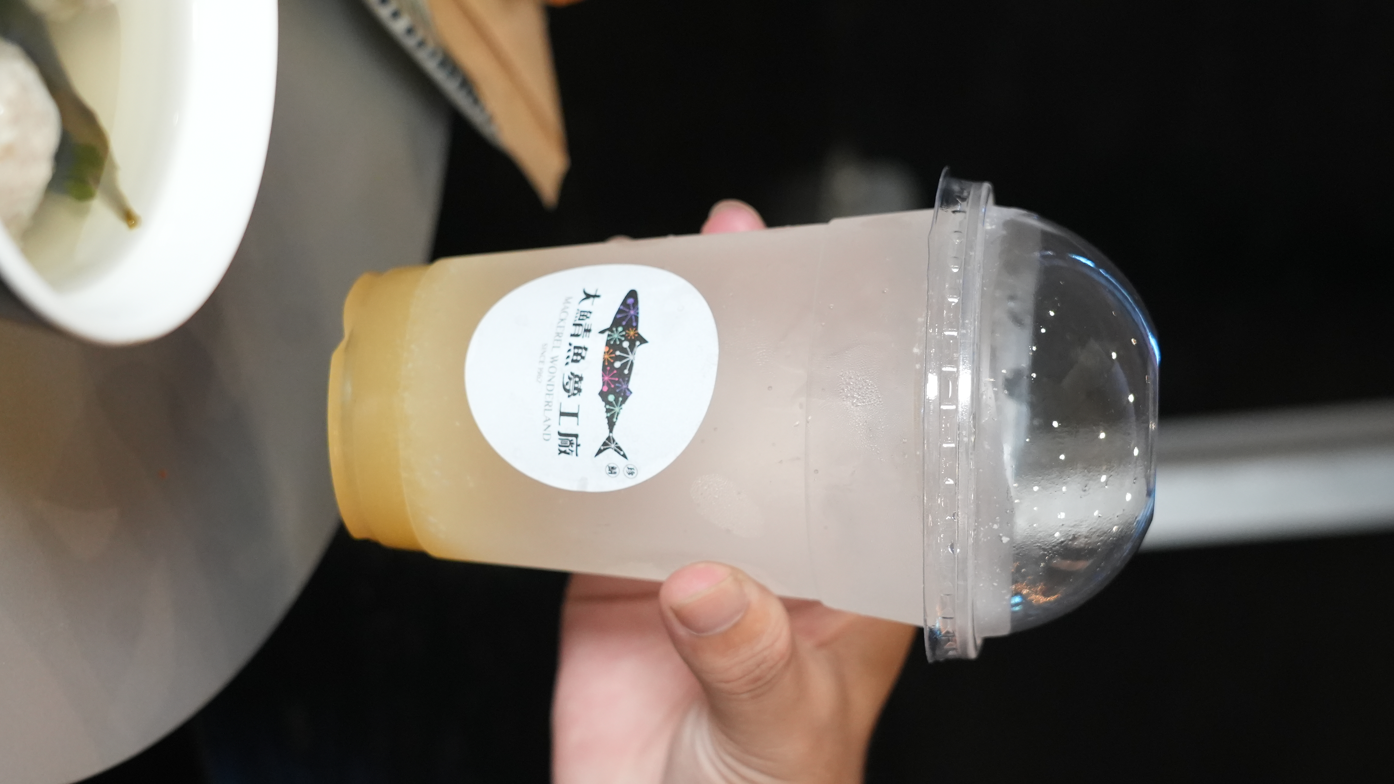 清爽的氣泡搭配淡淡鯖魚香氣,尾韻還真的喝得出鯖魚精的甘甜。