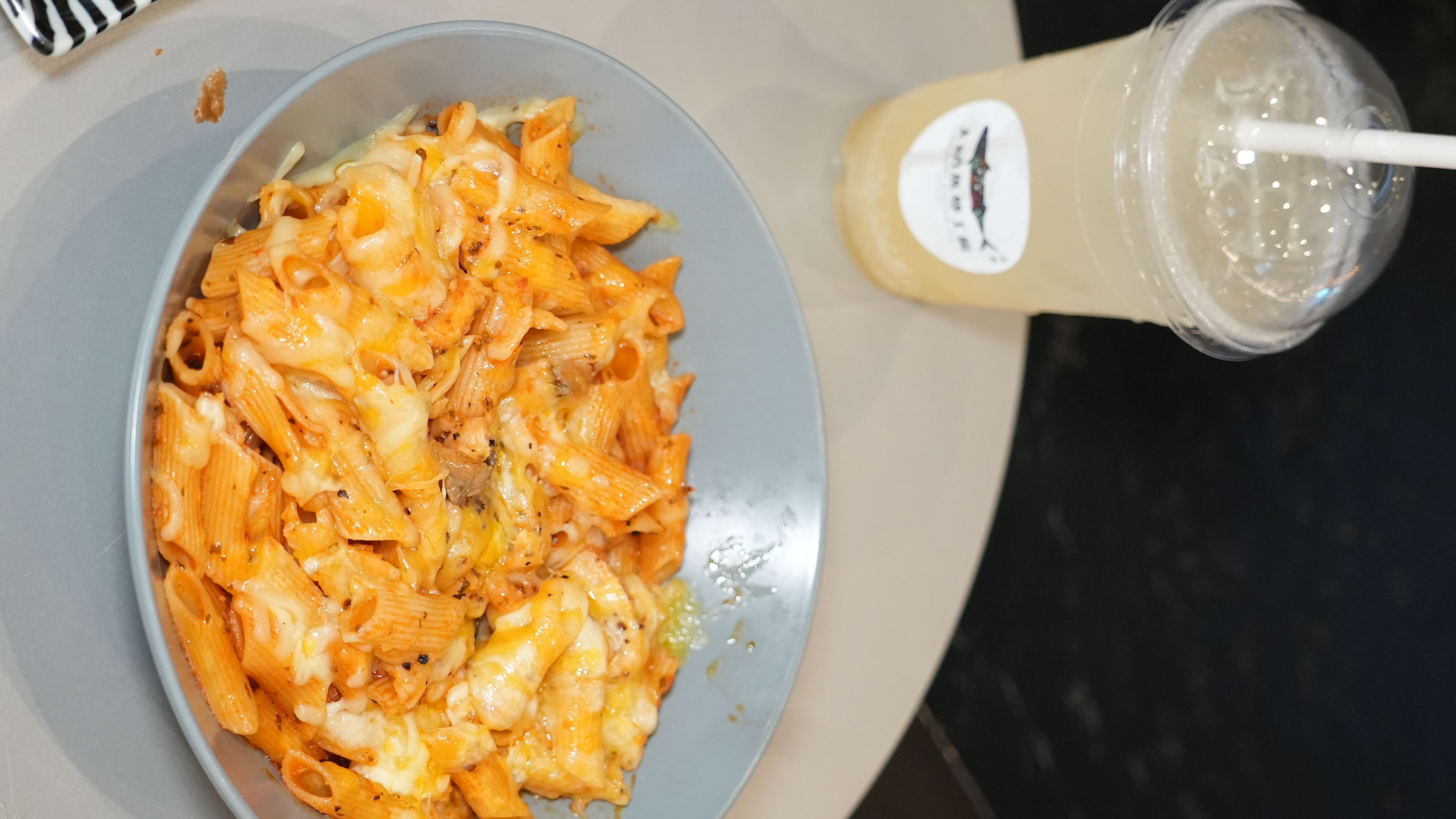 番茄醬酸甜開胃,包裹著每一根筆尖麵,配上鯖魚肉塊後,整體味道很平衡。