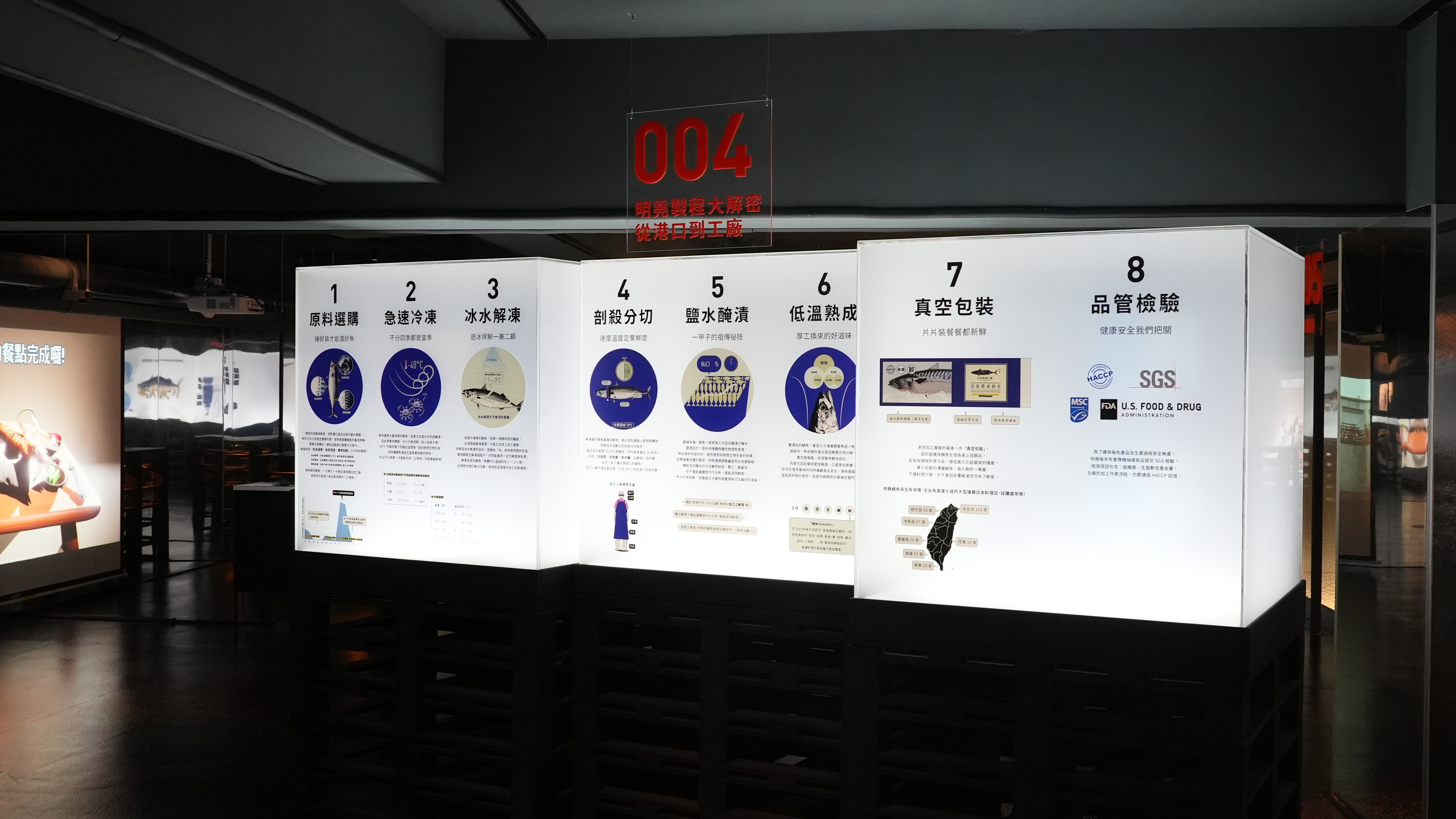 包含漁船捕撈、即時急凍、運送、分切、加工等全流程展示。