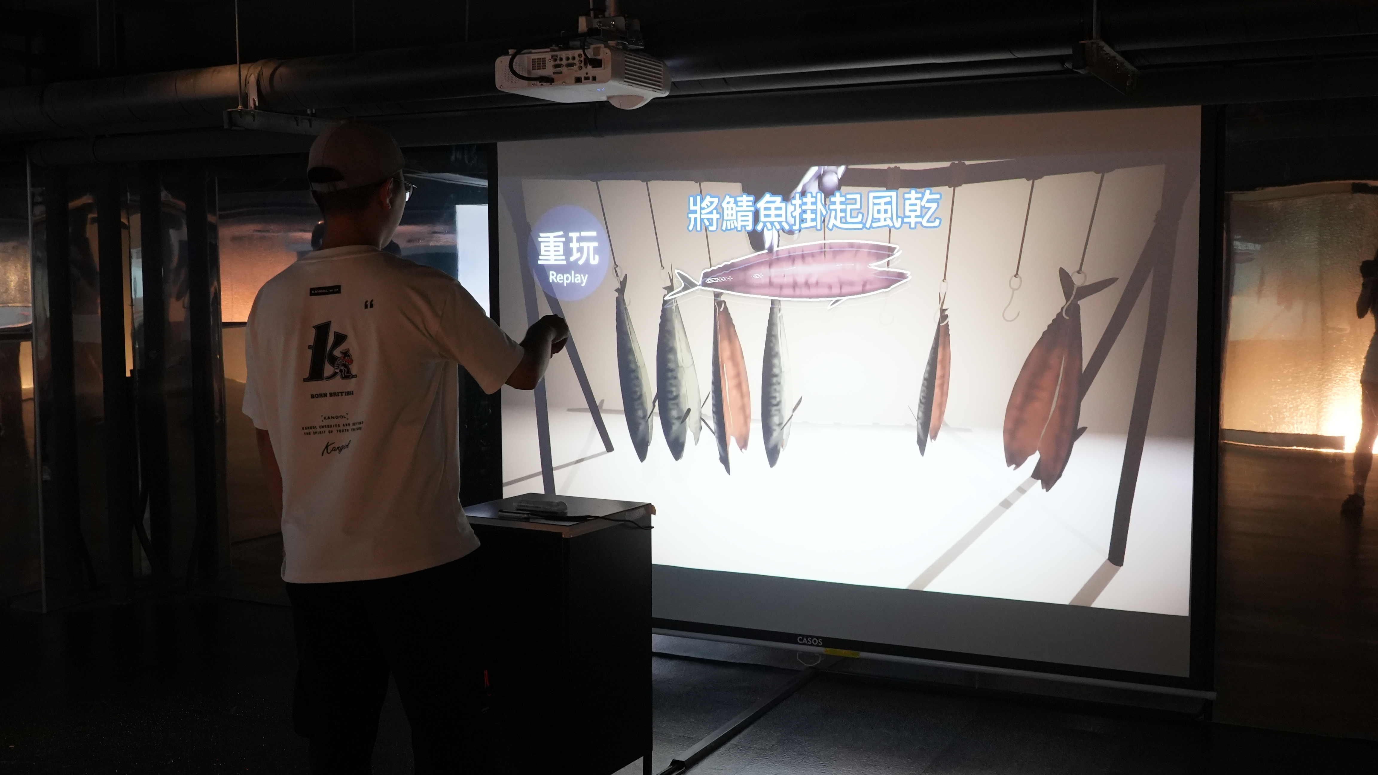 還有沉浸式投影互動區,可以模擬「製作一夜干」,簡單操作又超有參與感,我們玩了好幾輪